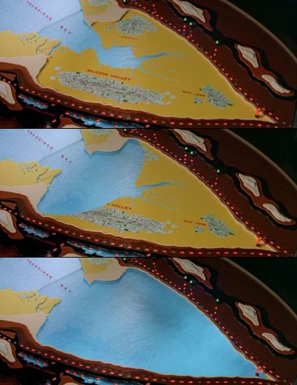 Silicon Valley may have seemed like a trendy setting to the average moviegoer of the era. The term had only been coined ten years before. During the film, the first utterance of the phrase “Silicon Valley” is qualified with “near San Francisco,” as if anticipating that viewers would need a reminder. It is a myth, however, that the hi-tech paradise seemed to rise rapidly out of thin air in the 1970s and 80s with the popularization of companies like Apple and IBM. A vibrant electronics industry had already existed in the San Francisco/San Jose environs from the earliest days of television and radio. In the ensuing years, its image increasingly became one of young entrepreneurship, fueled by the Valley’s close ties with local research universities like Stanford. Friendly business cooperation, tolerance, and the feeling of being “distinct” geographically from the deep-rooted corporations of the East Coast all contributed to Silicon Valley’s mythos.